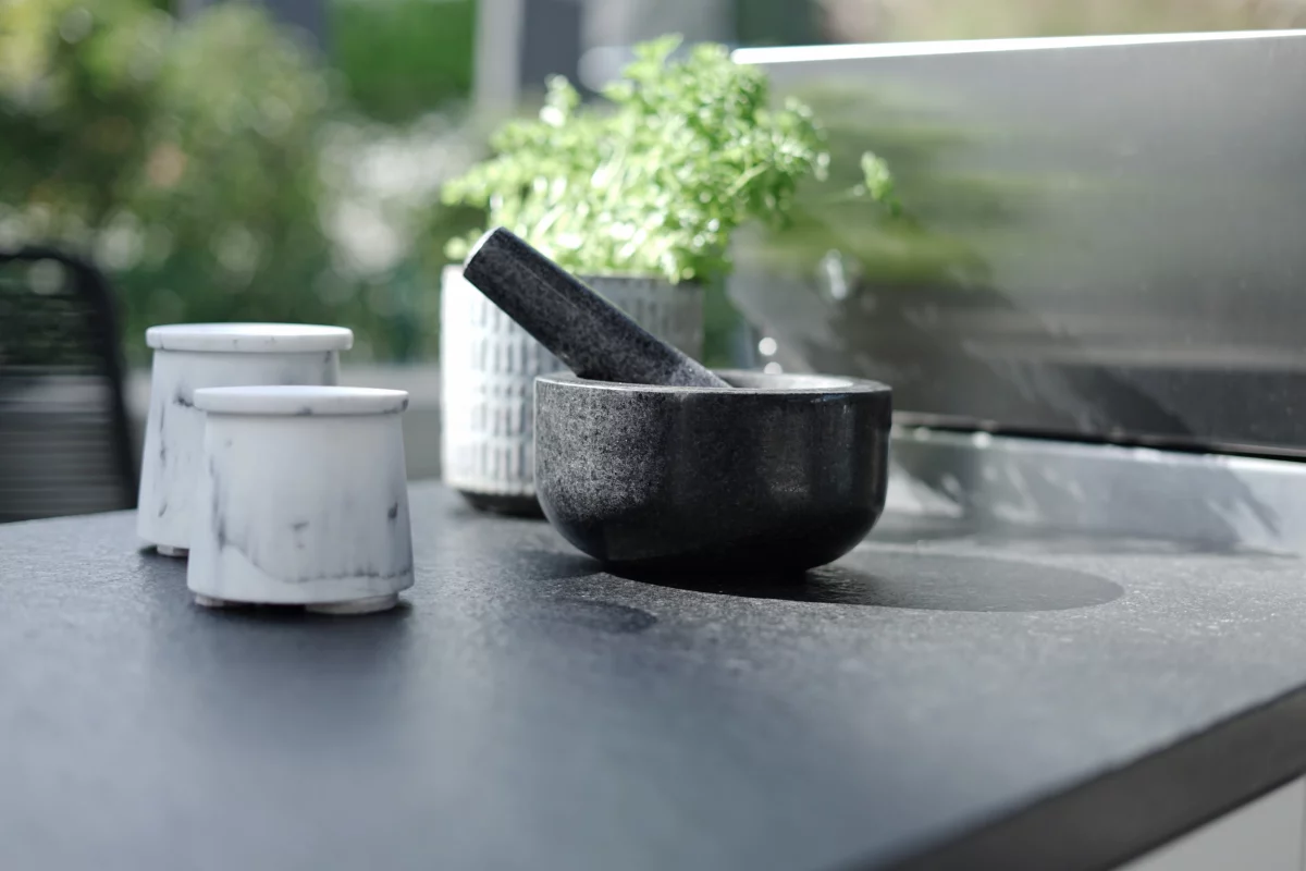 Gleichzeitig bietet Naturstein eine belastbare Arbeitsfläche für den täglichen Einsatz draußen. Entscheidend ist dabei nicht nur die Optik, sondern das Zusammenspiel aus Oberfläche, Kante, Einbindung und Nutzung im Gesamtkonzept der Küche.